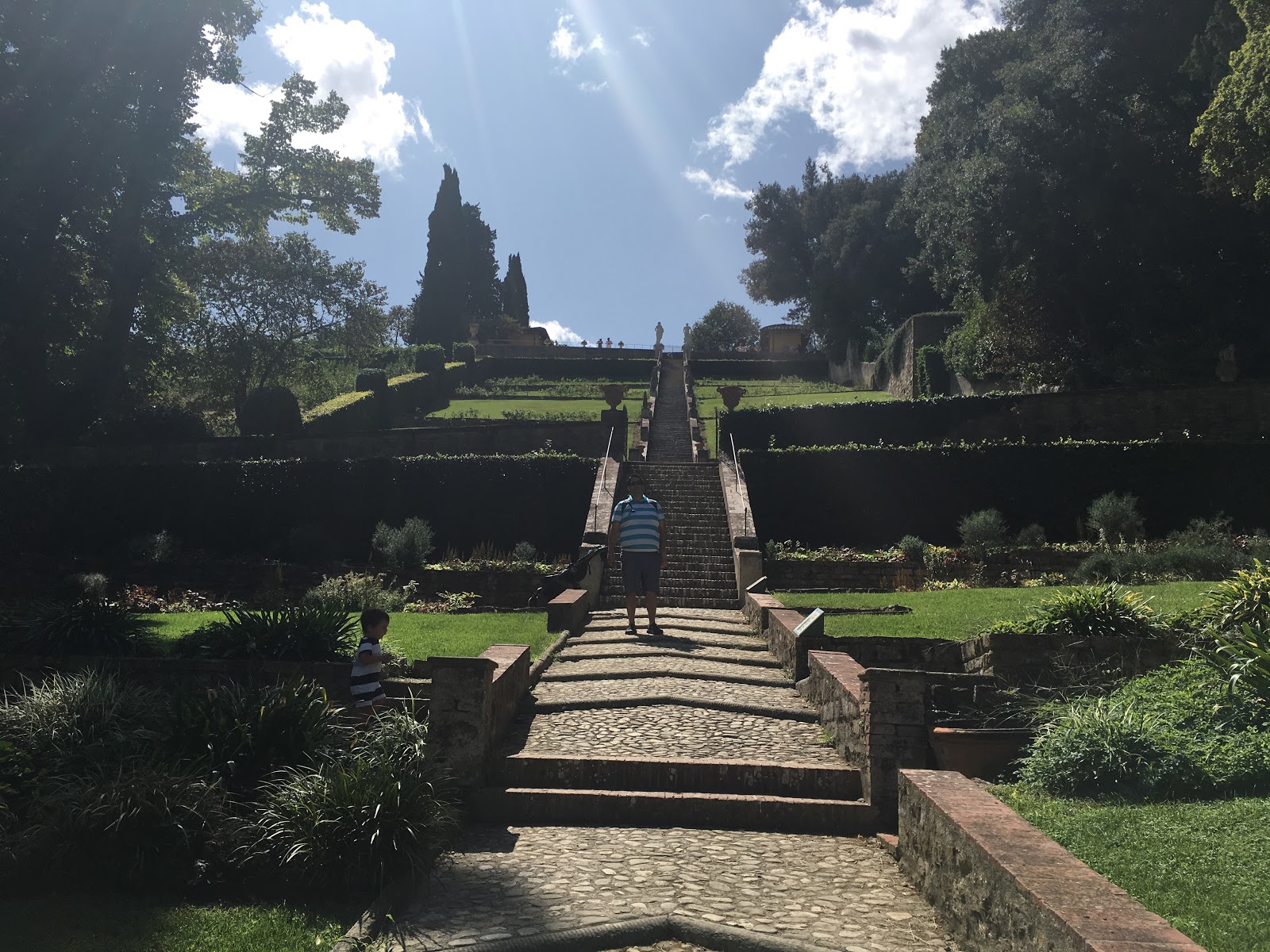 After our morning fighting crowds at the museum we decided to find some green space to let Christopher run free a bit. He was the most amazing kid on this trip but he definitely needed his time to just be free to play with rocks and dirt. We walked through Florence and across Pont Vecchio and along the river to Giardino Bardini. It was perfectly uncrowded! Topher took off his shoes and collected piles of rocks which he then threw into the dirt again. He was in heaven and with views like this I was too!